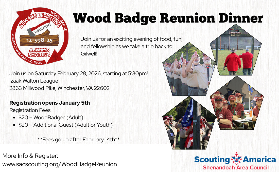 Monthly calendar with all of the programs and activities scheduled in the Shenandoah Area Council for 2026