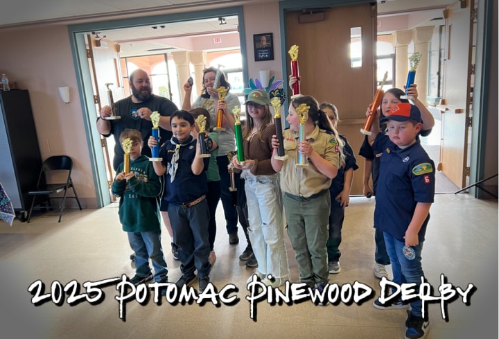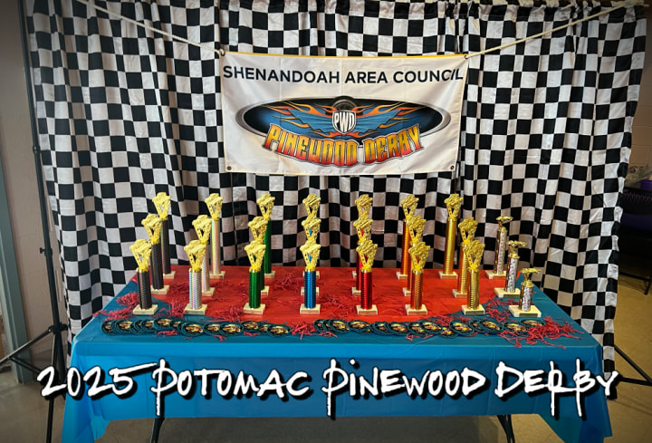 The Potomac District Pinewood Derby is open to all Cub Scouts and Siblings/friends in the Potomac District. We will have 1st through 3rd place awards in each rank and the Sibling/friends division. The top three Scouts in each rank advance to the Shenandoah Area Council Pinewood Derby.